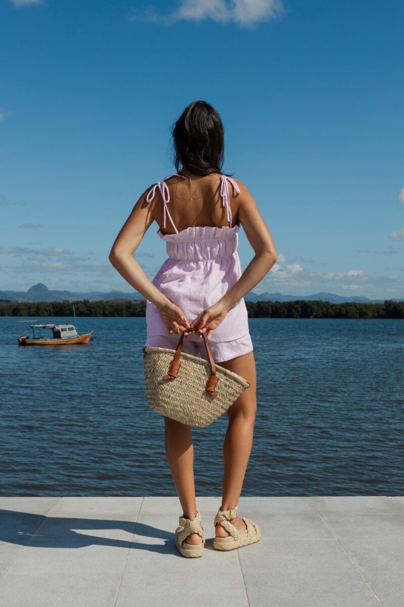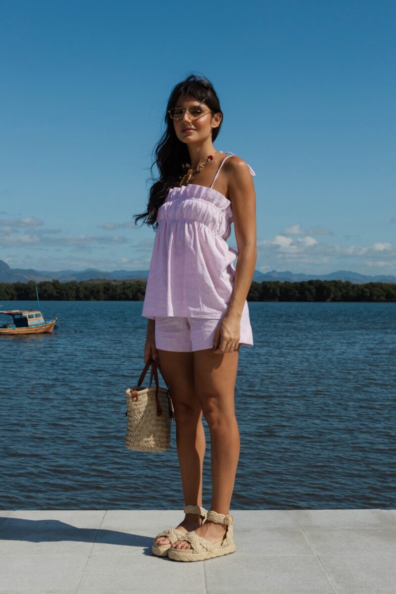 Todo charme dos fechamentos com botões forrados, processo totalmente manual e personalizado. Perfeita para combinar com shorts, saia ou calças. Peça versátil e atemporal. Nossa blusa é toda dupla e com acabamento impecável