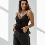 Blusa Jade na cambraia de linho, tecido de fibra natural é uma peça indispensável no guarda roupas feminino. As amarrações frontais trazem o charme a peça.
