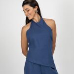 A blusa Tarci em linho é uma peça super moderna. Com amarração nas costas que dão todo o charme.