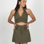 Saia curta toda forrada, no linho com viscose e fechamento atrás com zíper invisível.