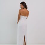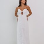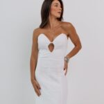 O modelo tomara que caia valoriza o colo com um design exclusivo em formato de coração e um elegante recorte central, que adiciona um toque de modernidade e sensualidade na medida certa.